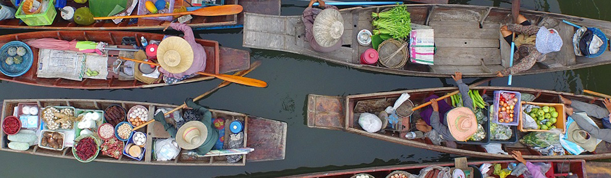 Floating market, popular among Thais, about 110 km from central Bangkok (Siam Square).