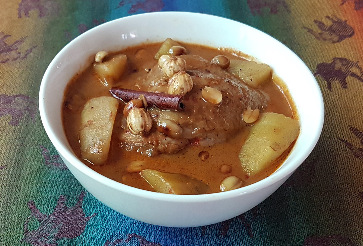 Massaman curry comes from the south of Thailand and uses a lot of Indian spices which separates its taste and aroma from many other Thai dishes. It works just a well with roti or nan bread as with jasmine rice.